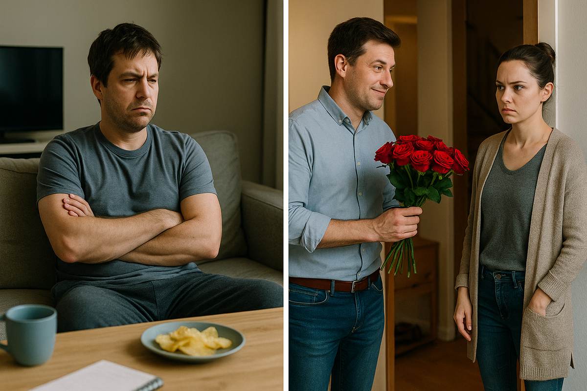 Вечером того же дня произошло то, чего Наталья не ожидала. Виталий вернулся с работы с огромным букетом алых роз. В руках был ещё пакет из кондитерской — любимые эклеры Натальи.