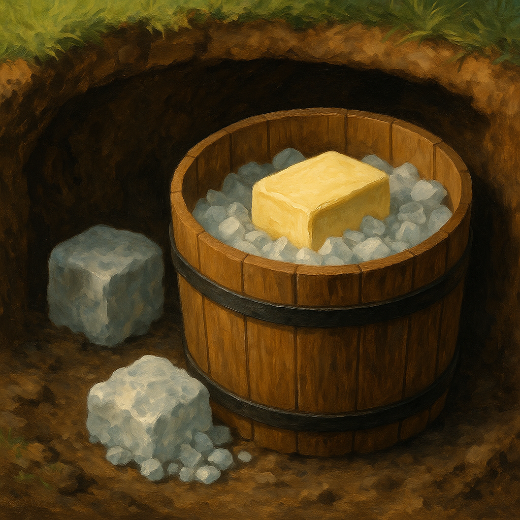 Сливочное масло, завернутое в плотную ткань, лежит в деревянной бадье, окруженной кусками льда, добытого зимой из замерзшей реки. Бадья спрятана под землей, чтобы жаркое солнце не испортило продукт. И вот вы уже в XIX веке — там, где первые холодильники были больше похожи на хитрые сундуки с морозом внутри. До появления технологий охлаждения сохранность продуктов была настоящей битвой с природой. Лёд заготавливали зимой и хранили в ледниках — глубоких ямах или деревянных срубах, засыпанных землёй и дерном. В Европе на богатых столах блюда подавали в фарфоровых емкостях, утопленных в снегу или льду. Это был роскошный способ продлить свежесть, доступный далеко не каждому. В 1748 году шотландский профессор Уильям Каллен провел демонстрацию искусственного охлаждения, используя вакуум и испарение эфирных жидкостей. Зрелище впечатляло, но практической пользы от опыта тогда не нашли — слишком сложно и дорого. В 1803 году фермер и изобретатель Томас Мур решил перевезти сливочное масло на рынок