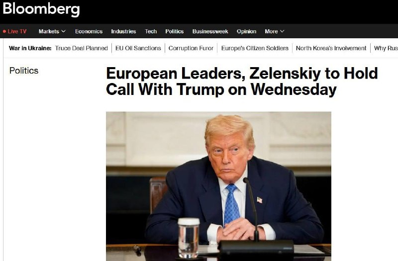 Зеленский и европейские лидеры проведут телефонный разговор с Трампом 13 августа, за два дня до его встречи с Путиным, — Bloomberg