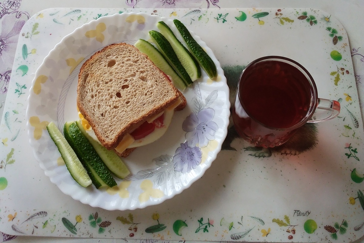 Всем привет. В понедельник утром поехала опять на Сенной рынок за помидорами. Ездила в пятницу и купила два килограмма помидоров по 50 рублей. 1 кг ростовских помидоров с носиком, как у шапочки будёновки, а вторые купила розовые. Вот розовые купила зря, какие-то они водянистые и невкусные, а ростовские хорошие помидоры, их сразу съели, и к понедельнику уже от 2 кг ничего не осталось. Куда они делись, непонятно. Дети пекли пиццу, в пиццу ушло две штуки. Но съели и съели. Я съездила еще раз. Думала купить огурцов и замариновать хотя бы пару баночек, но вспомнила, что я один раз мариновала, и они простояли всю зиму. Мы про них забыли, и особого желания есть маринованные огурцы не было. Покупали всю зиму свежие парниковые. По одному, два, но покупали. Завтрак. Сэндвич с яйцом, сыром и огурцом ем на завтрак три дня. Конечно, не один и тот же, а готовлю разные. 😂 Как-то сварила овсяную кашу, но есть не стала. Пару ложек через силу съела, зря что ли вприла, но потом есть не стала. Н