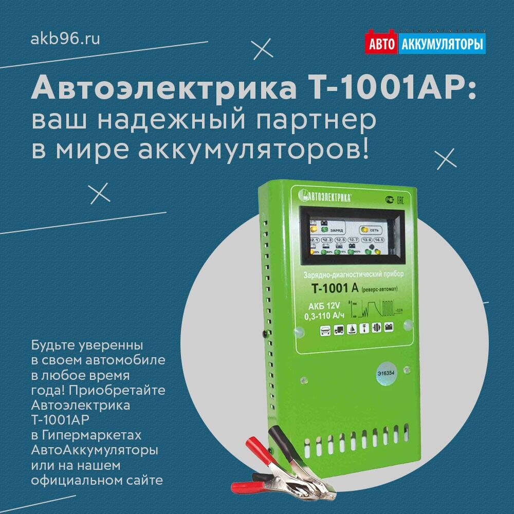 Зарядно-диагностический прибор Автоэлектрика Т-1001АР — это незаменимый помощник для всех автомобилистов, стремящихся к качественному обслуживанию своих стартерных аккумуляторов. Этот многофункциональный прибор сочетает в себе зарядное устройство и диагностический инструмент, что делает его идеальным выбором для профессионалов и любителей. Технические характеристики: