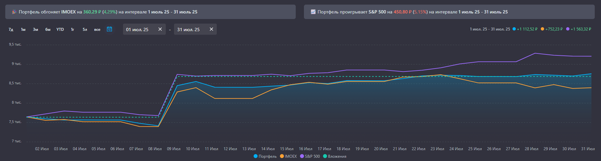 Результат всё ещё выше рынка. Что выражается в большом использовании маржинальности на низкорискованных активах. При больших портфелях это "мышиная возня", но меня с ограниченным бюджетом дико прёт и даёт силы развиваться дальше.