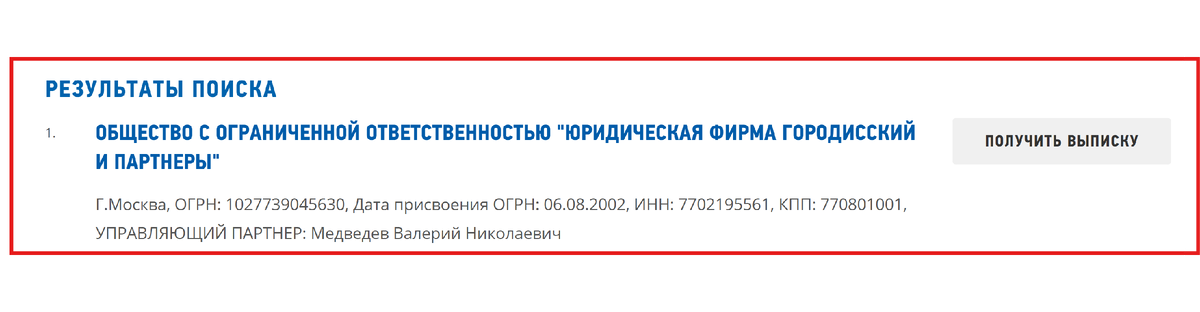 Более того, согласно картотеке арбитражных дел (https://kad.arbitr.ru) ООО "Юридическая Фирма Городисский и Партнеры" принимает активное участие в судебных спорах - более тысячи судебных дел.