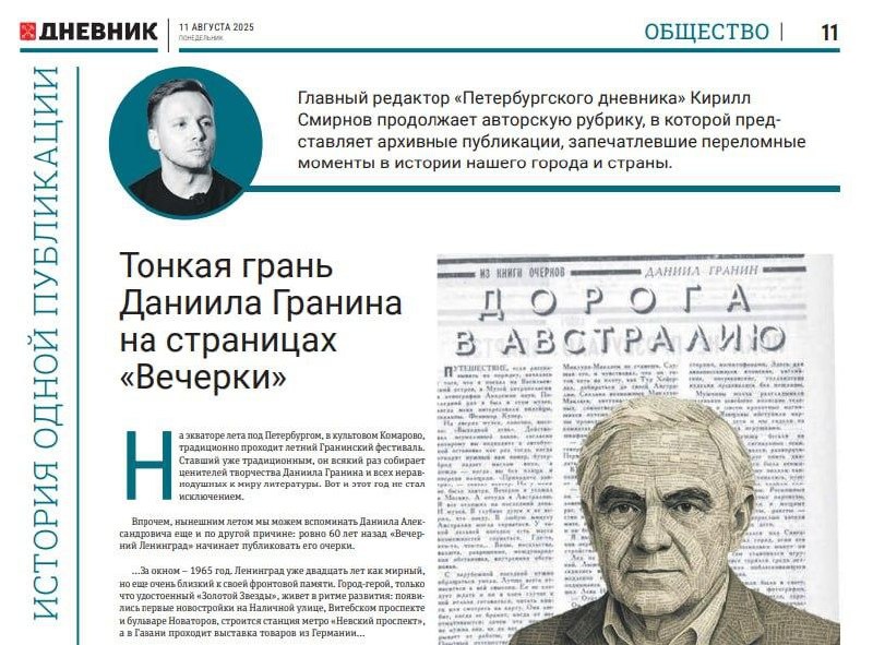 ΠΈΠ²Π½ΡΠ΅ ΠΏΡΠ±Π»ΠΈΠΊΠ°ΡΠΈΠΈ, Π·Π°ΠΏΠ΅ΡΠ°ΡΠ»Π΅Π²ΡΠΈΠ΅ ΠΏΠ΅ΡΠ΅Π»ΠΎΠΌΠ½ΡΠ΅ ΠΌΠΎΠΌΠ΅Π½ΡΡ Π² ΠΈΡΡΠΎΡΠΈΠΈ Π½Π°ΡΠ΅Π³ΠΎ Π³ΠΎΡΠΎΠ΄Π° ΠΈ ΡΡΡΠ°Π½Ρ. ΠΡΠΎΡΡΠΌ Π³Π΅ΡΠΎΠ΅ΠΌ ΡΡΠ±ΡΠΈΠΊΠΈ ΡΡΠ°Π» ΠΠ°Π½ΠΈΠΈΠ» ΠΡΠ°Π½ΠΈΠ½. Π ΡΠ±ΡΠΈΠΊΠ° Β«ΠΡΡΠΎΡΠΈΡ ΠΎΠ΄Π½ΠΎΠΉ ΠΏΡΠ±Π»ΠΈΠΊΠ°ΡΠΈΠΈΒ» ΡΠΆΠ΅ Π² Π³Π°Π·Π΅ΡΠ΅. ΠΡΠ»ΠΈ Π½Π΅ ΡΡΠΏΠ΅Π»ΠΈ ΠΏΡΠΎΡΠ΅ΡΡΡ Π² Π³Π°Π·Π΅ΡΠ΅, ΡΠΎ ΡΠΈΡΠ°ΠΉΡΠ΅ Π² ΠΏΠΎΡΡΠ΅! ΠΠ΅ΡΠ΅ΡΠ±ΡΡΠ³ΡΠΊΠΈΠΉ Π΄Π½Π΅Π²Π½ΠΈΠΊ