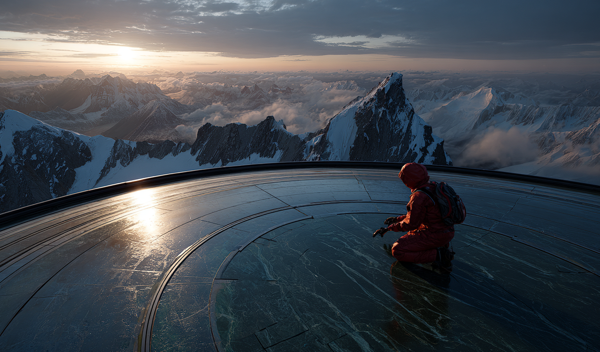 — Я поднялся на вершину на рассвете, — начал Виктор, и его голос стал глуше. — Погода была идеальная, редкое «окно». Вокруг — куда ни глянь — горы, ледники, облака под ногами. Красота неземная, ты знаешь. Я шел к самой высшей точке, уже представлял, как достану наш флажок, сфотографирую… И вдруг увидел. Вместо обычного снежного наноса с торчащими палками и флагами там была она. Площадка.