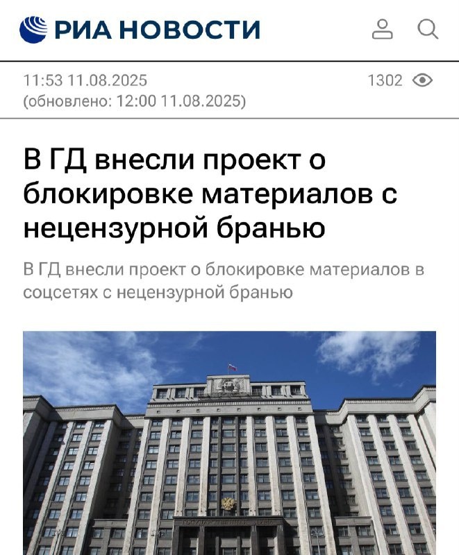 ⚡️В России хотят рубануть весь контент с матом — в Госдуму уже занесли соответствующий законопроект.
