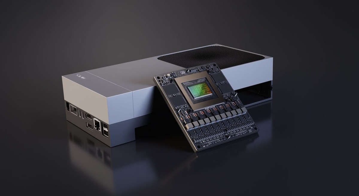 NVIDIA представила комплект разработчика AGX Jetson Thor — компактный ИИ-компьютер для робототехники и автономных систем в стиле видеокарт Founders Edition за $3499. Компания заявляет, что Thor в 3–4 раза быстрее предшественника Jetson AGX Orin в задачах ИИ. AGX Jetson Thor оснащён GPU Blackwell с 2560 ядрами CUDA, 96 тензорными ядрами пятого поколения и частотой до 1,57 ГГц, 14-ядерным CPU Arm Neoverse-V3AE, 128 ГБ LPDDR5X (273 ГБ/с) и SSD M.2 NVMe на 1 ТБ. Есть 2×USB-A 3.2 Gen2, 2×USB-C 3.1, HDMI 2.0b, DisplayPort 1.4a и Wi-Fi 6e.
