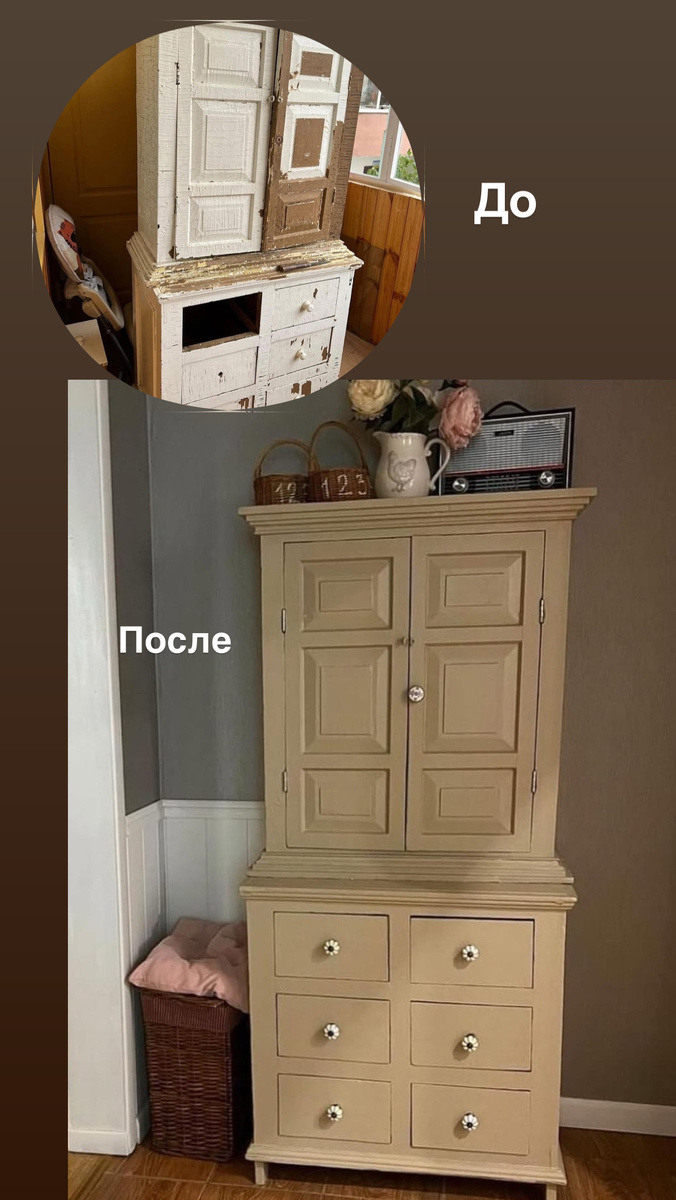 Иногда мебель, которая кажется безнадёжной, может заиграть новой жизнью. В этом убедился каждый, кто хоть раз брал в руки кисть и банку краски. Частый вопрос, который мне задают: «А если предмет уже был покрашен, что делать?» И, как правило, никто точно не знает, чем именно он был покрашен. Поэтому действуем так: 1. Оцените состояние старого покрытия Способы снятия краски: 2. Подготовка поверхности перед покраской 3. Покраска. Берём краску для перекраски мебели Мирабелла 4. Уход за окрашенной мебелью Пример: реставрация старого шкафа: За фото и проделанную работу благодарим @vikailina77777 🌿 а так же поздравляем с обновлённый буфетом!!! Краска Мирабелла Сатин, цвет Кешью. P/S данная инструкция написана при условии использования краски для перекраски мебели Мирабелла. При использовании других красок , вам может понадобиться обязательная грунтовка , а так же финишное покрытие ( лак или воск) Желаю всем самых красивых и легких преображений!