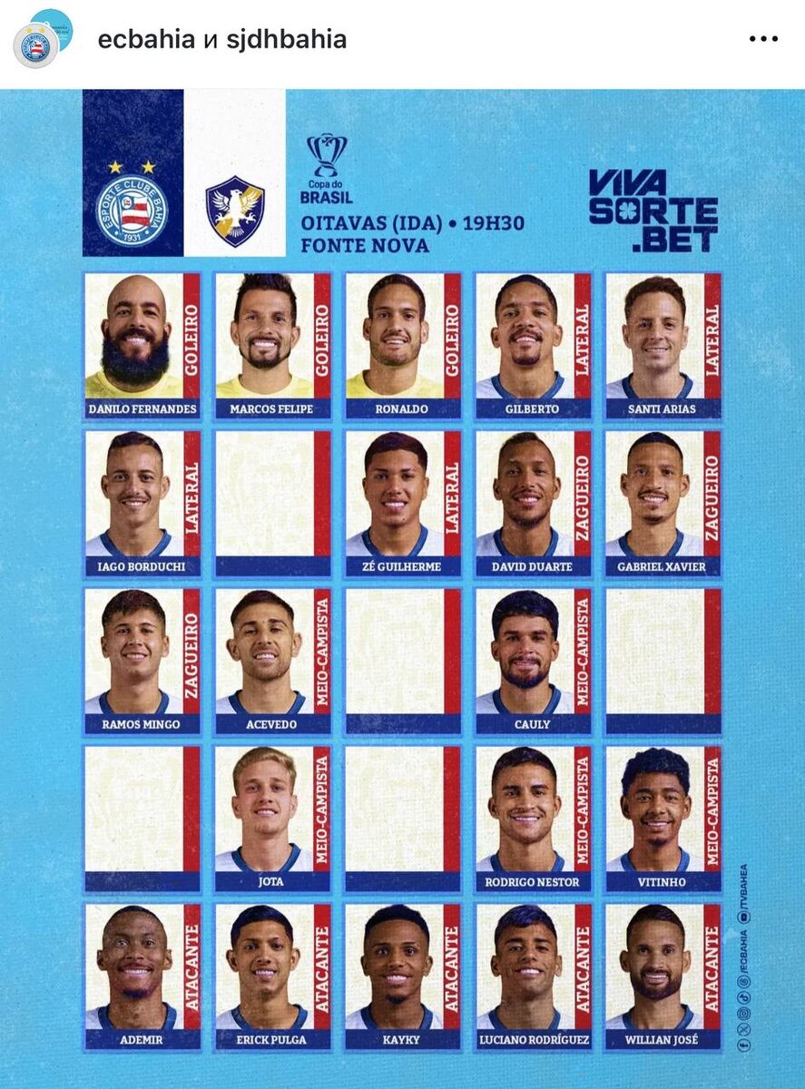 В ответ на пост Во Всемирный день борьбы с торговлей людьми бразильский клуб «Байя» необычно представил состав на матч: оставили пустые окошки среди футболистов. Возникла идея. В составы на матч можно добавлять фото/имена пропавших людей (совместно со специальными фондами). К составам, обычно, много внимания – есть вероятность, что человека получится найти. Схожая история уже давно у итальянской «Ромы» – при объявлении трансферов. И это работает: люди находятся. Что думаете? 💯 – можно пробовать 👀 – сомнительно ПРО маркетинг в спорте