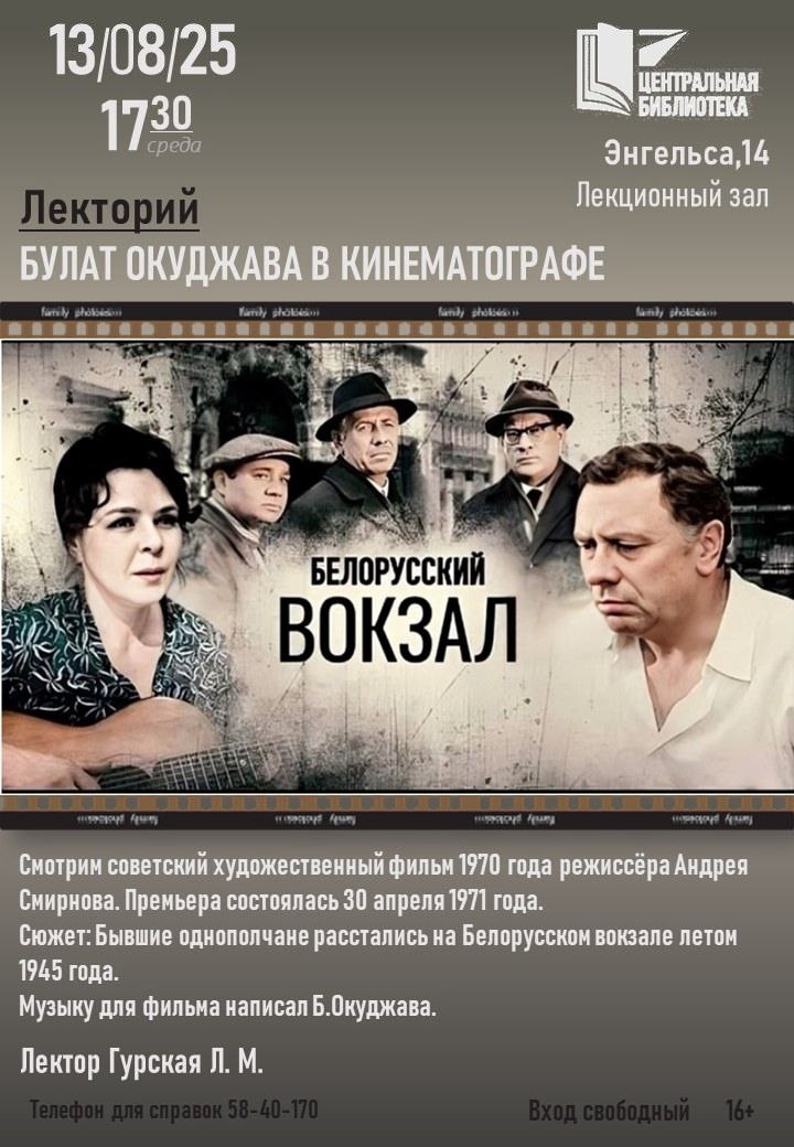 🎥13 августа в 17:30 в Обнинской библиотеке