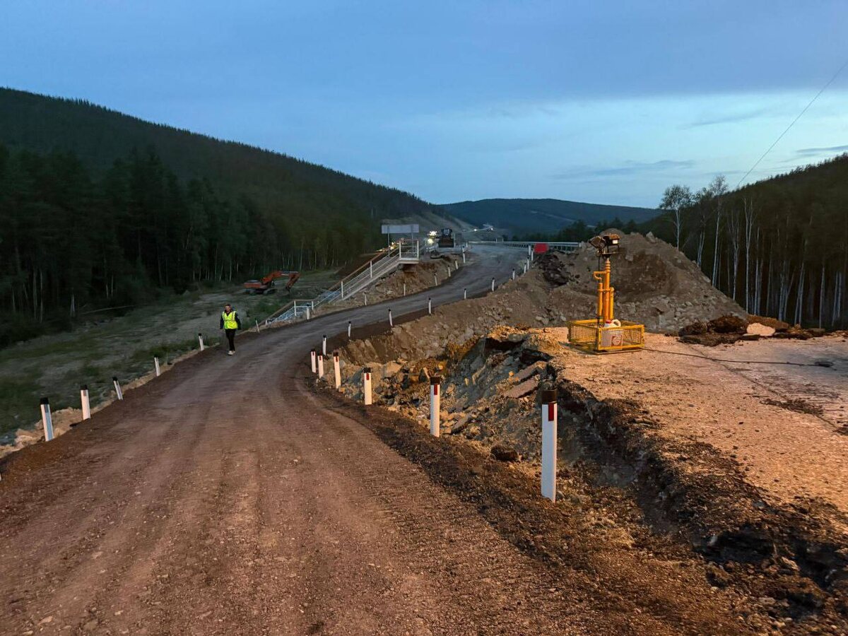 ❗️ На участке трассы «Лена» в Тындинском округе, где произошел обвал дорожного полотна, открыт временный объезд Движение доступно для всех видов транспорта с 20:00 11 августа. Длина объездного пути составляет 400 метров. Специалисты произвели укладку двух водопропускных труб диаметром 2,5 метра каждая. Для отсыпки временной дороги было использовано 26 тысяч кубометров грунта. В настоящий момент работы на объекте продолжаются. Дорожники укрепляют сооружение, устанавливают барьерное ограждение и временные дорожные знаки.