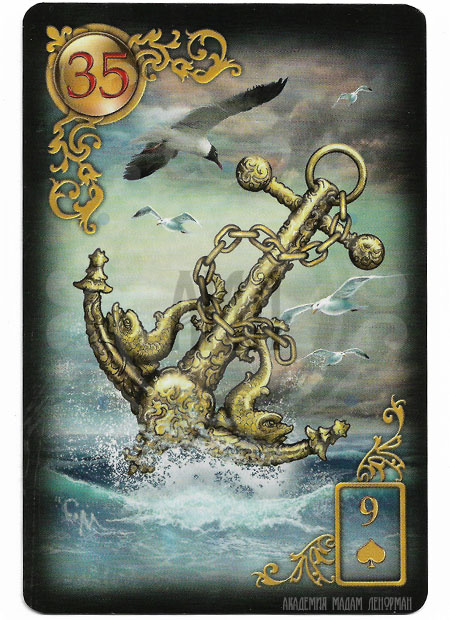 ЯКОРЬ Стабильность, прочность, безопасность, ответственность. Равновесие. Тихая надёжная гавань. Консервативный, медлительный, связанный, прикованный. Якорь - единственная гарантия безопасности для корабля в шторм. Это делает его символом надежды и благополучия, в том числе, в сфере человеческих отношений. Ваша мечта осуществится, говорит эта карта, если Ваши отношения с другими строятся на прочной основе верности и дружбы. Эта карта является символом доверия и постоянства. Вы хотите найти спокойную пристань. Безопасность Вы найдете в кругу семьи или в общении с близким человеком. Вы достигнете своей цели. Данная карта будет неизменно благоприятной вне зависимости от окружающих карт. Это также верно для профессиональных и деловых вопросов. Вас ждет успех. В вопросах взаимоотношений: верность, доверие. Отношения стабильны, ничто не может разрушить ваш союз. Рядом с неблагоприятными картами - скука, пресыщение. В деловых вопросах: крепкий бизнес, прочные основы, хорошая материальная ба