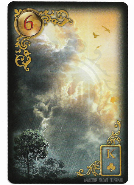 ОБЛАКА Нежданная угроза, кризис, надвигающиеся неприятности. Тревога. Непредвиденные обстоятельства. Помеха. Сомнение. Столкновение противоборствующих сил. Неясность ситуации. «Облака» описывают напряжённую, не ясную ситуацию. По карте не понятно, пойдёт ли дождь или же распогодится, и буря пройдёт стороной. Карта очень эмоциональная: дурные предчувствия, тяжёлые мысли, переживания. «Облака» омрачают настроение, символизируют неприятности, недомогания, любые нежелательные события. У этой карты есть и светлая сторона. Дождь не идёт вечно, и он смывает всю грязь, все лишнее, наносное. После грозы легко и приятно дышится. Главное – это вовремя спрятаться и переждать бурю. Именно переждать, повлиять на события по карте «Облака» человек не может, это стихийное природное явление. В вопросах взаимоотношений: Вместе с « облаками» в отношения приходит холод. Неясны намерения партнёра. Люди вместе, но один из них сомневается в правильности выбора. Начинается полоса испытания чувств на прочност