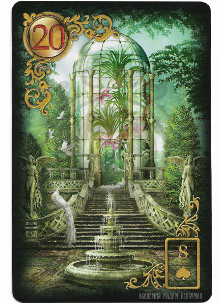 ПАРК Общественные праздники. Приятные события. Место встреч. Налаживание связей. Артистическая среда. Творческий рост. Эта карта как бы приглашает к радости и веселью. Жизнь прекрасна, впереди праздник. Вас ждут друзья и близкие люди - направляйтесь к ним, Вы нужны им. Предстоит встреча, может начаться новая дружба. Рядом с личной картой означает также успех в искусстве или науке, период вдохновения. Преданная и длительная дружба. Иногда может означать отдых.Как место уединения и бегства от мира, ПАРК символизирует земные и небесные удовольствия. Это место, где Вы чувствуете себя счастливым среди других людей. Но мир социальных знакомств, вечеринок и ни к чему не обязывающих контактов может быть так же миром сплетен и слухов. Не становитесь рабом верования, того, что Вы в конце концов "сделаете это" просто потому, что Вы получите признание в этот момент. Карта ПАРКА также является картой иллюзии, блестящей внешности и экстравертных жизненных стилей. Вы, без сомнения, имеете сейчас в