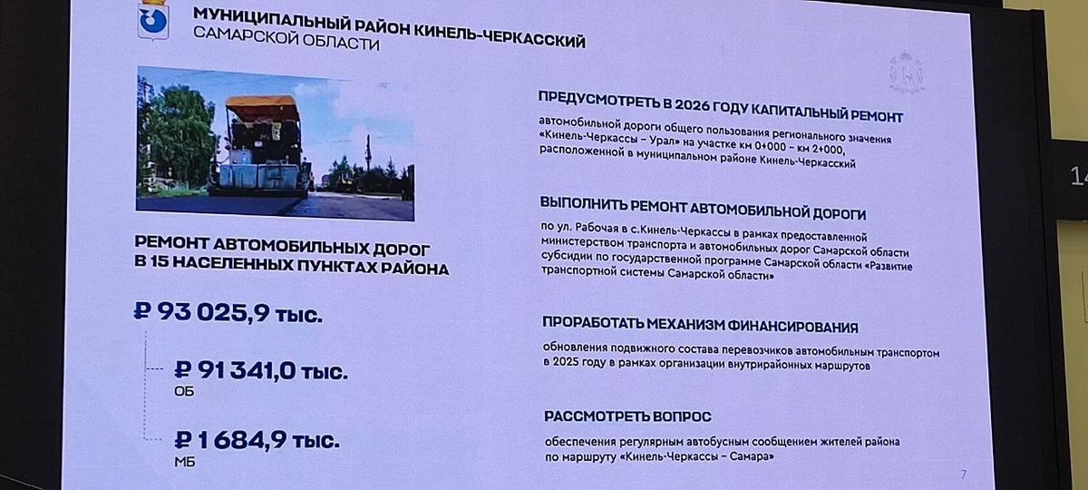 Было решено предусмотреть в 2026 году капитальный ремонт автомобильной дороги «Кинель-Черкассы - Урал» на участке км 0+000 – км 2+000.