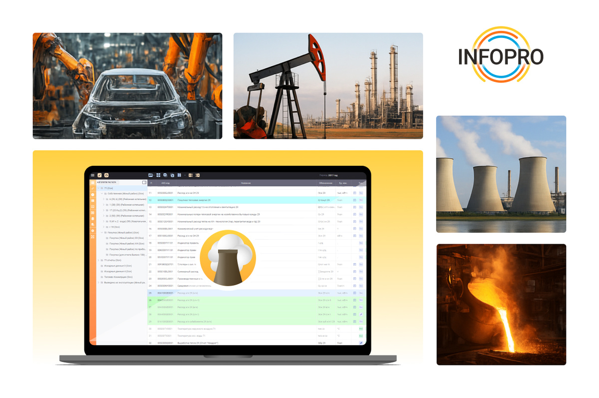«ИНФОПРО: Расчет ТЭП» — это специализированная система, которая автоматизирует учет, расчет и анализ ТЭП в режиме реального времени. Решение подходит для ТЭЦ, ГРЭС, ГЭС, металлургии, нефтегазовой отрасли, химии, машиностроения и других энергоемких производств.