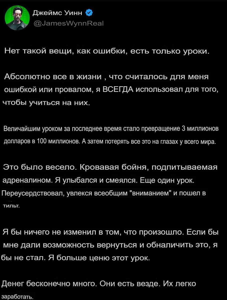 Джеймс Уинн: от $3 млн к $100 млн и обратно