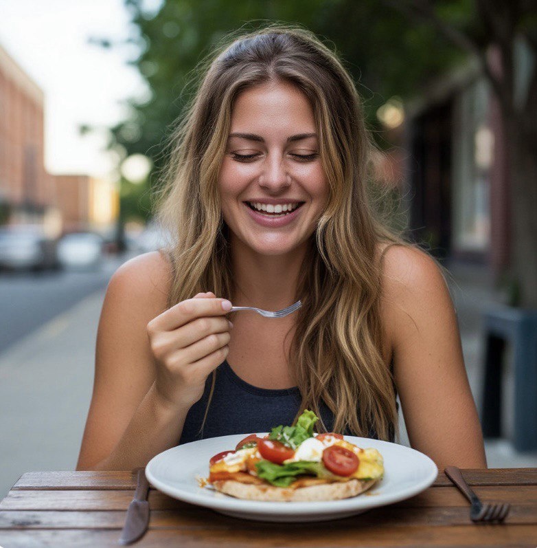 Как-то я и не заметила, как еда стала просто фоном моей жизни. Я ела за рулём, жуя бутерброд, который уже не помнила, как оказался в руке. Ела на ходу, между звонками, за ноутбуком, в наушниках, в разговоре. Ела, не замечая вкуса. Если бы меня спросили в тот момент, что я люблю, я бы, наверное, назвала ролл из ближайшего фаст-фуда или йогурт из магазина — просто потому что это быстро, под рукой и не требовало решений. И тогда я решила попробовать аскезу на осознанное питание, ради того, чтобы снова почувствовать себя. Хотя бы раз в день остановиться. Сесть. Убрать телефон. Просто поесть нормально. Не на бегу, не за рулём, не между делом. 21 день только осознанное питание. Сначала было странно. Неловко. Как будто я забыла, как это — просто жевать. Как будто мой мозг растерялся, когда не нужно было одновременно думать о куче задач. Но постепенно что-то начало меняться. Я стала замечать вкус. Не просто «сладкое» или «солёное», а как хрустит корочка, как тает крем во рту, как тепло чая ра