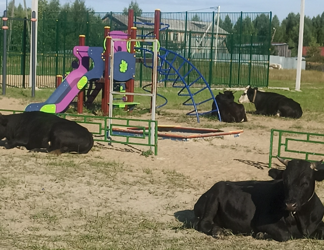 В Тобольске стадо коров оккупировало детскую площадку. Это произошло на территории Левобережья, рассказали местные жители в социальных сетях. Пока дети утром спят, коровы отдыхают на детской площадке! Пояснили очевидцы. Тоболяки отнеслись к ситуации с негативом, отметив, что животным не место там. Где гуляют дети. На территориях детских площадок, школ и детсадов запрещается выгул домашних животных. Думаю, никому не захочется ступить в коровью лепёшку. Навоз хорош в огороде, но никак не на детской площадке. Возмутилась девушка в комментариях. Впрочем, некоторые нашли поводы для шуток: «Это заколдованные непослушные дети, которые задержались на детской площадке после 22:00» – шутят местные.