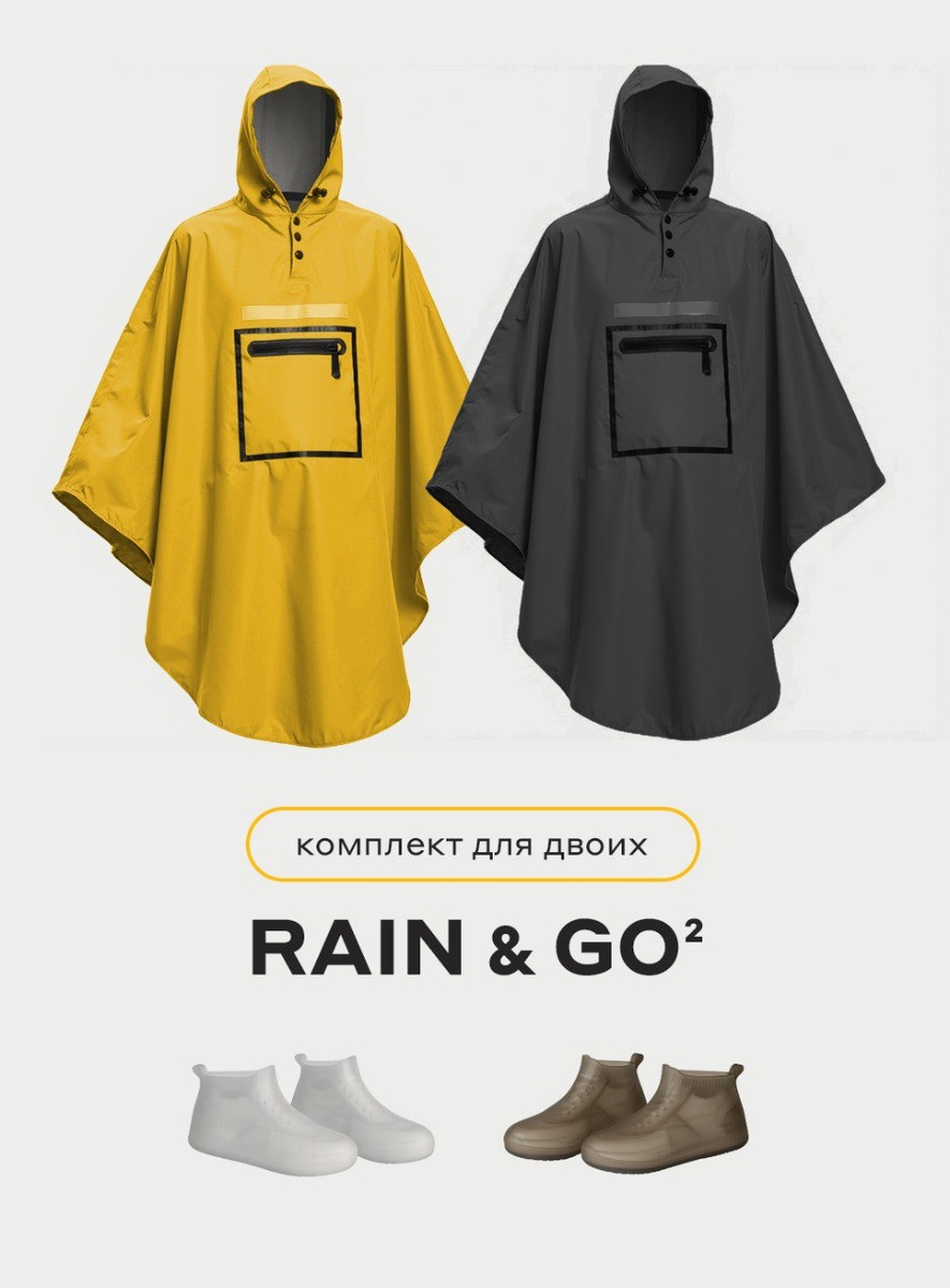 Друзья, мы знаем как вы любите комплекты и выгодные паки :) Поэтому сделали спецпредложение 🤌 💧 Rain & Go² — двойная защита для вас и вашего спутника: В комплект входят: - 2 дождевика размера S-L черный и желтый (на рост 150–185 см.) - 2 непромокаемых чехла для обуви (1 в подарок) Два лёгких и прочных дождевика и два непромокаемых чехла для обуви — всё, что нужно, чтобы не бояться непогоды и оставаться стильными даже в самый мокрый день. Выбрать свой комплект