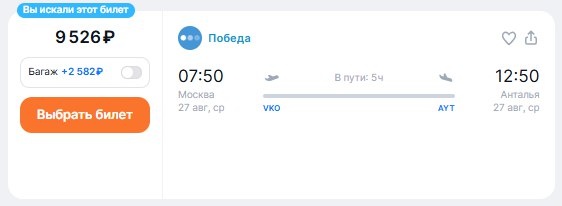 ✈️Москва - Анталья (Турция), прямой рейс за 9500 рублей