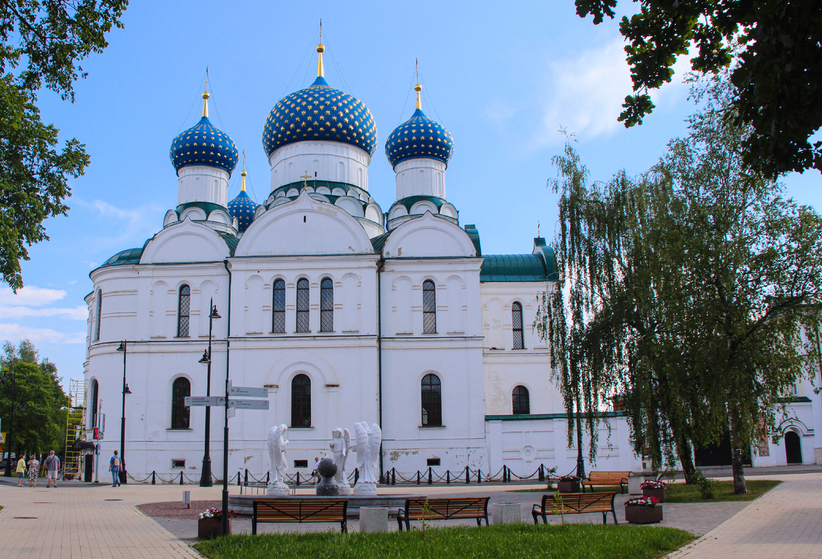 Богоявленский монастырь в Угличе. Архитектурное сокровище - Белокаменный собор с пятью главами, основанный в XIII веке