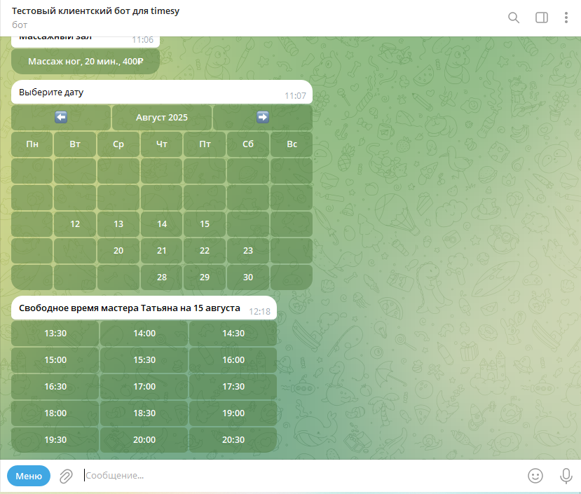 Телеграмм бот для записи клиентов на услуги предоставляет интуитивно понятный интерфейс: