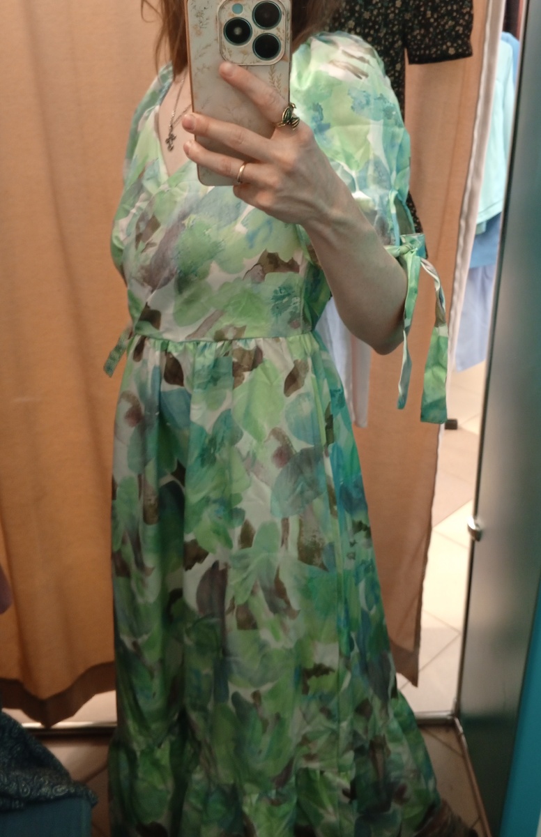 Но сначала все-таки секонд. Не выдержала, взяла померить платье, хотя там была одна единственная бирка и на ней только размер xl. Я иллюзий не строила. Конечно, Китай и точно полиэстер. Но цвет, но фасон😍 В результате решила все-таки померить. И не пожалела. Их xl, это наш m, если не меньше.