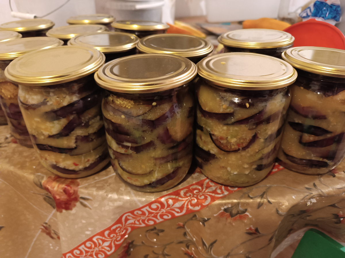 Вообще это ужасная заготовка. Ни за что её не делайте. Евгеньевна матюгается и зарекается каждый год, но этот её Петрович - неутомимый инициатор и вдохновитель всех кулинарных непотребств в их доме. Припёр с огорода два ведра баклажанов. Где они там выросли, никто не знает. Кустов мало, штук 10-12. И все в листьях. Ничего не предвещало трагедии . Короче, два ведра. И ещё, говорит, море малышей подрастут со временем. Бабуля ойкнула. Потому что знает уже, что продавать не даст, крутить заставит. И крутить не абы что, не салатик или икру, это уже потом, когда остатки пойдут, а сейчас вот эти ужасные, кружочками, с чесноком. Так и случилось . Сел резать кружочки, бабка у плиты. Опять вся кухня оказалась в масляных брызгах. Опять два литра масла жестоко и необратимо впиталось в эти жареные кружочки. Опять бабка ходит с волдырями от ожогов на пальцах. Опять они разругались с Петровичем вдрызг, потому что она не просто жарила 4 часа кряду, переворачивала эти чёртовы малюсенькие диски, а ещё