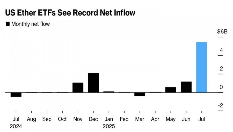 https://basechop.ru/wordpress/?p=53492 Высокий глобальный аппетит к риску и спрос со стороны специализированных биржевых фондов и криптоказначейств позволили биткойну замахнуться на рекордные максимумы. Котировки BTC/USD едва не дотянули до зафиксированного в середине июля исторического пика. «Быки» как будто испугались собственной прыти и сделали шаг назад. Однако новый рекорд является делом времени. По данным Coingecko, запасы криптоказначейств во главе с Strategy Майкла Сейлора достигли отметки $113 млрд. Консалтинговая фирма Architect Partners раскрыла их планы по покупке биткойнов на $79 млрд в 2025. Вкупе с притоками капитала в ориентированные на лидера сектора цифровых активов ETF, приобретение токенов криптоказначействами приводит к росту спроса и цен на них. Динамика притока капитала в ориентированные на эфир ETF Биткойн уже давно переписал бы исторические максимумы, если бы не возросшая конкуренция со стороны эфира. Принятие Конгрессом законодательства о стейблконах не тол