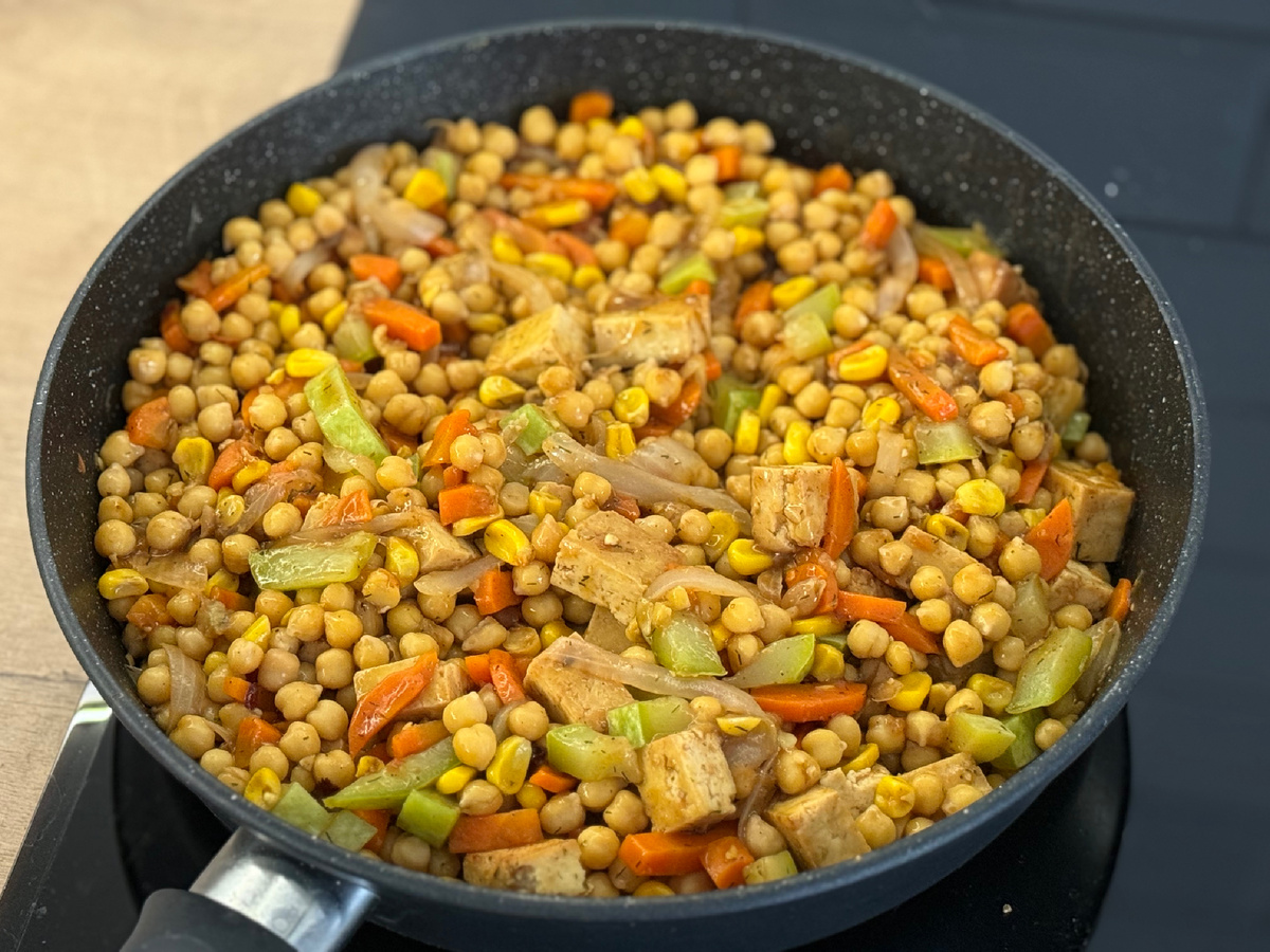 Нут с сыром Тофу и овощами в кисло-сладком соусе 🥫