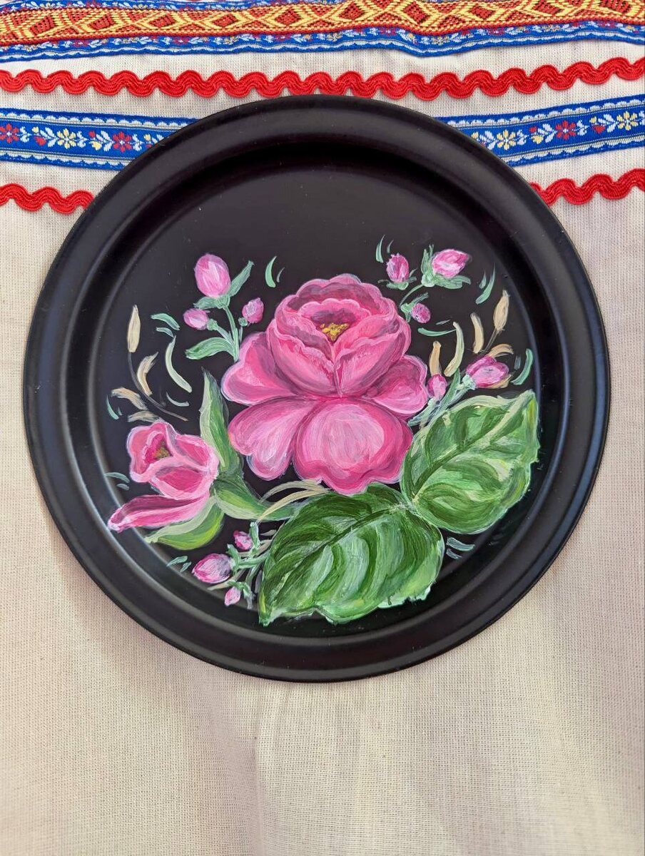 Во-вторых, такой букет с нашего мастер-класса по жостовской росписи лучше любого букета из магазина: не завянет, в вазу не надо ставить и ещё можно чай на нём носить.