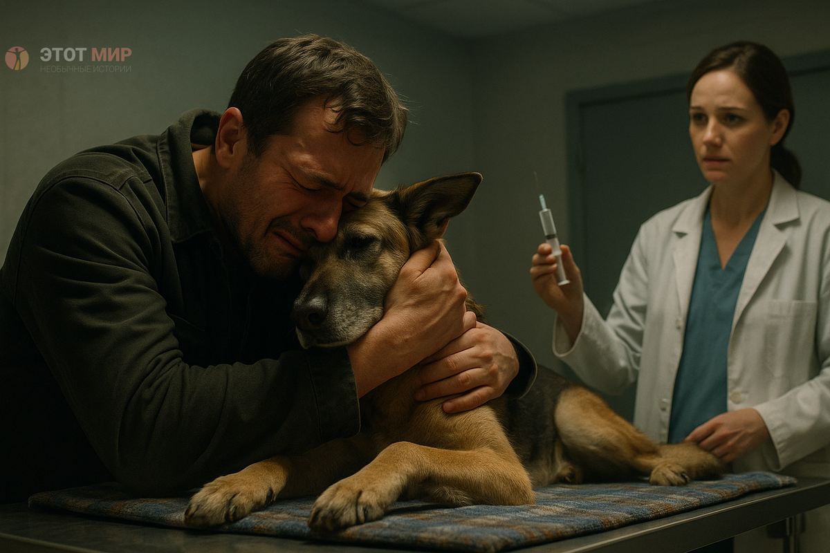 История о том, как в самый последний момент прощания с умирающим псом ветеринар заметила признаки, дающие надежду. Ветеринарный кабинет был маленьким, тесным, с низким потолком, под которым гудели люминесцентные лампы. Этот ровный, почти безжизненный звук только подчёркивал тишину, что стояла в помещении. На холодном металлическом столе лежал старый клетчатый плед, а на нём — Ричард, когда-то сильный, гордый восточноевропейский овчар, пёс, который знал вкус долгих прогулок по заснеженным полям, шум речки по весне и тепло человеческой ладони на загривке. Теперь его шерсть местами потускнела и выпала, дыхание было прерывистым, с сиплым надрывом, будто каждый вдох даётся через боль. Рядом сидел хозяин — Андрей. Он сгорбился, опустив плечи, словно вмиг постарел на десяток лет. Его ладонь медленно скользила по ушам собаки, и от этого простого движения внутри будто что-то ломалось. На ресницах дрожали слёзы, размывая в его взгляде контуры верного друга. — Ты был лучшим в моей жизни, Рич, — т