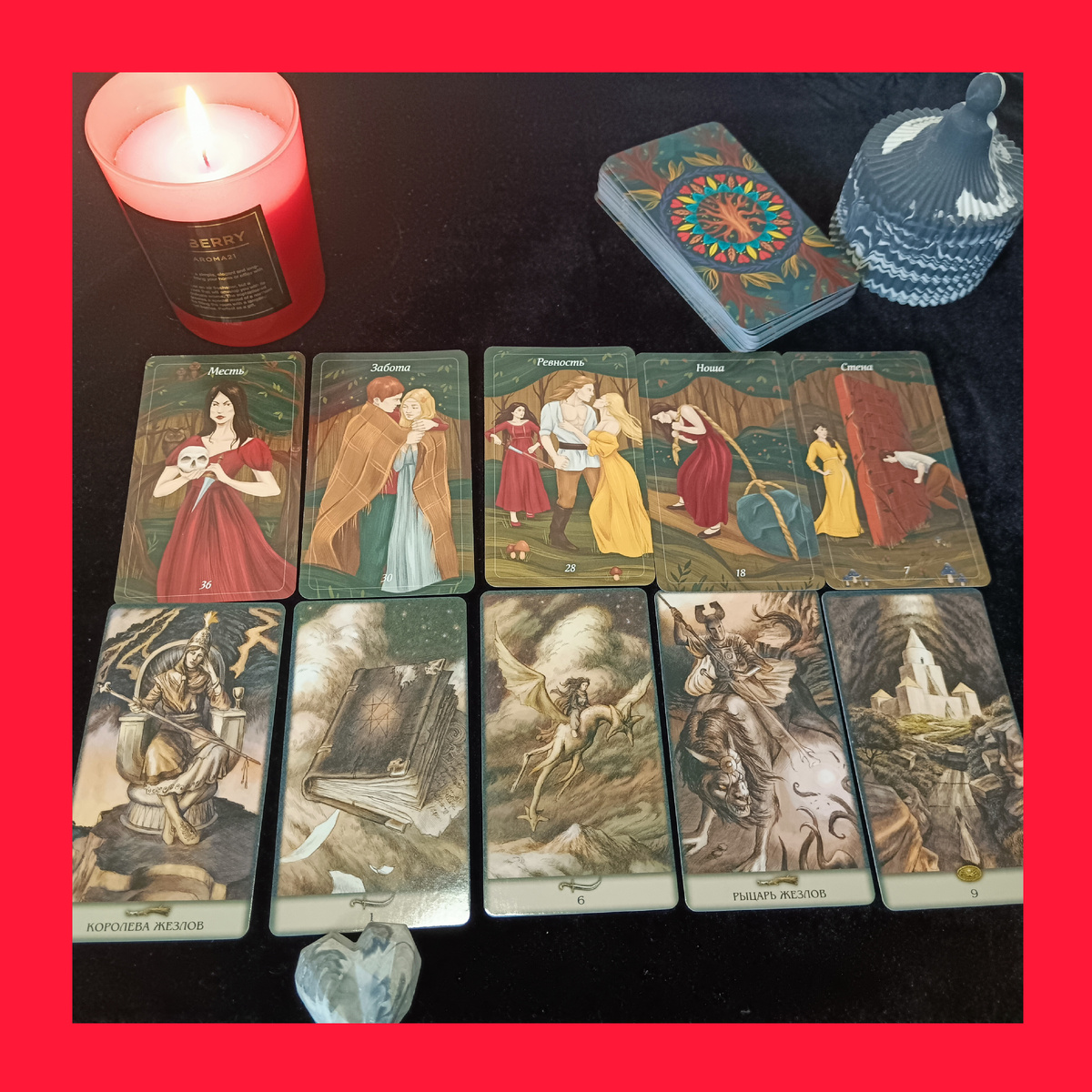 Всех приветствую ! Посмотрим, что в вас нравится, загаданному человеку ? О чём расскажут Таро ? Человек восхищается вашей сильной, независимой и яркой личностью. Вас он видит как уверенного в себе, умного, страстного и успешного человека, который имеет яркий, внутренний огонь, карта "Королева Жезлов". Вы умеете остро мыслить и ясно выражать свои идеи, карта "Туз Мечей". Обладаете стойкостью преодолевать трудности и двигаться вперёд. Ему нравится ваш энтузиазм и смелость в ваших действиях и начинаниях. 🔥👣 карта "Рыцарь Жезлов". По карте "9 Пентаклей"- он в вас видит человека, который достиг заслуженного комфорта и независимости, умеете ценить прекрасное и наслаждаться жизнью. 🌞 Расклад очень сильный, но в нём нет карт кубков отвечающих за глубокую эмоциональность и чувственность. Можно выделить, что данного человека в вас в первую очередь привлекают ваши волевые, интеллектуальные и жизненные качества. Вы "Королева Жезлов".. его глазами, "Королева" может проявлять тепло, но ей немн