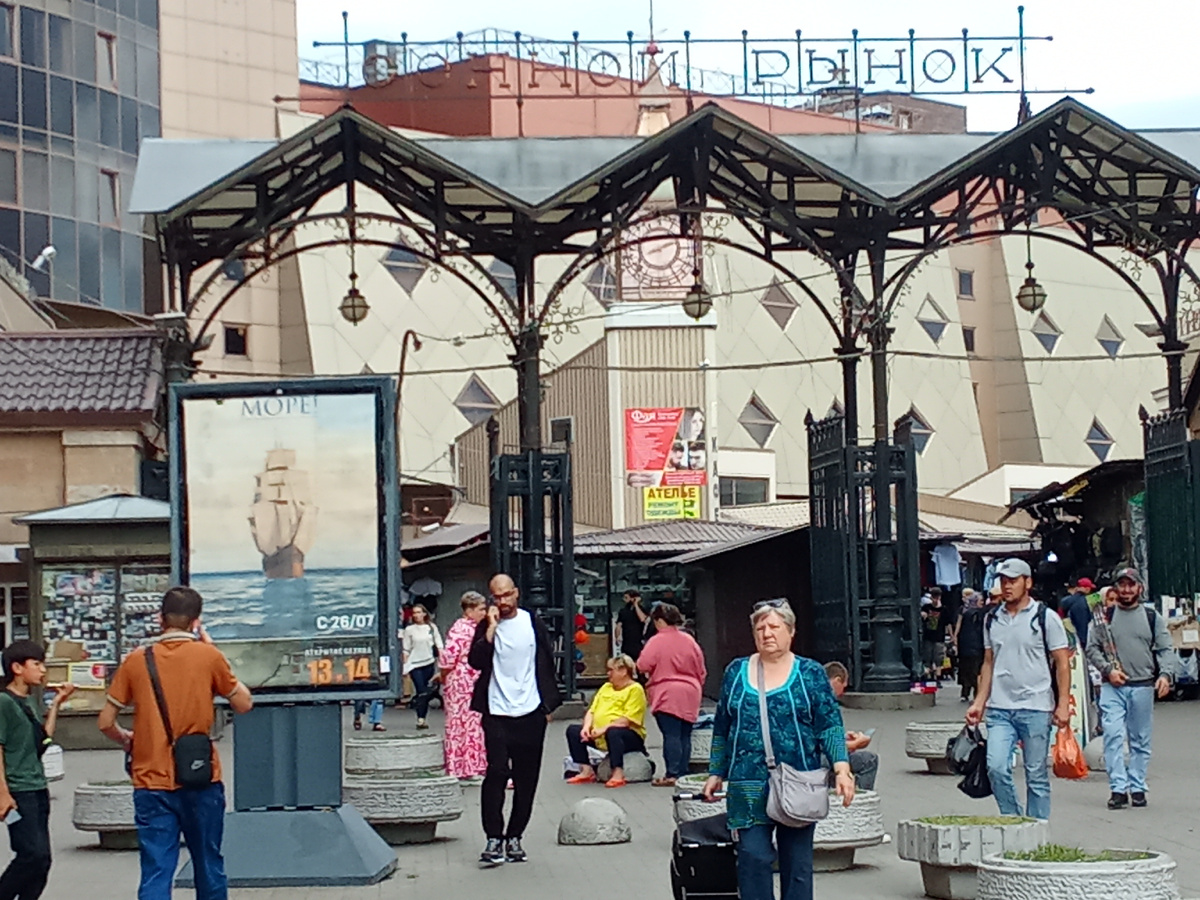 В субботу мы с мужем много гуляли по центру нашего города. В завершении маршрута длиной 8,5 км, планировали зайти на Сенной рынок. Этот рынок на первом месте по стоимости плодо-овошной продукции На рынке не протолкнуться. Хорошо, что заранее подготовились и взяли приличную сумму денег мелкими наличными купюрами Ассортимент продуктов здесь огромный. Напрягает толкучка и огромное количество покупателей. Сумку держала крепко... Прошлись по рядам... Груши и помидоры по такой цене купили Сливу покупать не планировали, поэтому не купили. В следующий раз пару кг возьмём на еду Огурцов по 50 р купили три килограмма для консервирования Нектарины по 70 по взяли. Оказались вкусные... На крытом рынке ещё приобрели за 100 р огромный пучок укропа для засолки овощей Цены на рынке, друзья, очень приятные, но надо следить чтобы продавцы не накидала в пакет не пойми что... Много чего купили и, нагрузив свои рюкзаки, отправились на автобус, который идёт в наш микрорайон с Садовой улицы. В автобусе е