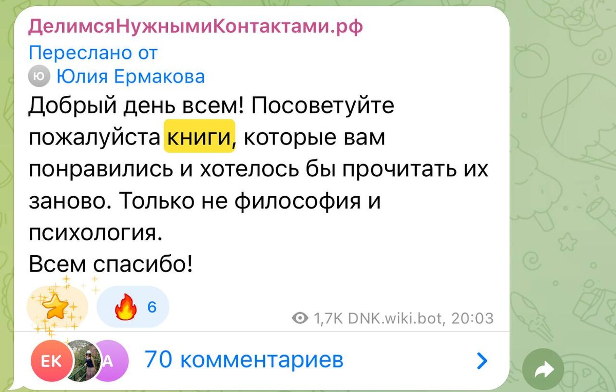 Добрый день. Помогите разобраться, публикация, с 70 комментариями (для примера), а я вижу только 14, и так уже примерно месяц, и не для всех публикаций ДНК. ТЛГ и телефон обновлены до новой версии, Афон если важно. Ещё заметила, если сразу не открывать комментарии, а подождать, то буду видеть все комментарии которые сделаны на тот момент, а новые опять не увижу. Аналогично было ещё в другом чате, но ошибка ушла сама собой. Загуглила, но ничего кроме обновлений не советуют.