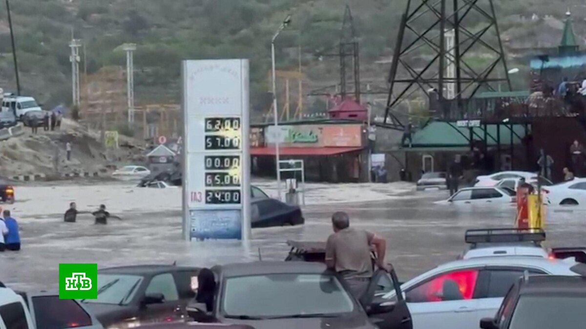 [ Смотреть видео на сайте НТВ ] Сильные ливни и шквалистый ветер спровоцировали в Дагестане камнепады и сход селевых потоков. В результате произошли коммунальные аварии, более 130 тысяч человек остались без электричества. В Каспийске не было еще и воды — молния ударила прямо в подстанцию, произошел взрыв. В горах из-за селей и камнепадов пришлось перекрывать дороги. Непогода продолжает проверять на прочность южные регионы страны. На этот раз мощный циклон обрушился на Дагестан. Ливни сопровождались шквалистым ветром. Порывы достигали 30 метров в секунду. По информации синоптиков, за несколько часов в регионе выпала месячная норма осадков. Дороги превратились в бурные реки, которые сносили все на своем пути. Ливни спровоцировали сход селей. Первыми под удар попали владельцы машин, посетители придорожных кафе и магазинов. Многие оказались заблокированными внутри помещений. Местные жители помогали пассажирам и туристам выбраться из ловушек. Мухаммад Абдулаев — владелец придорожной кофейни