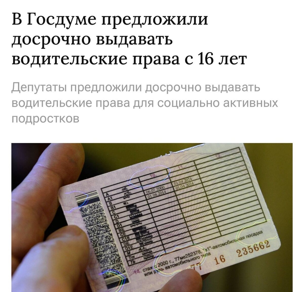 🪪 Выдавать водительское удостоверение подросткам с 16 лет предложили в Госдуме