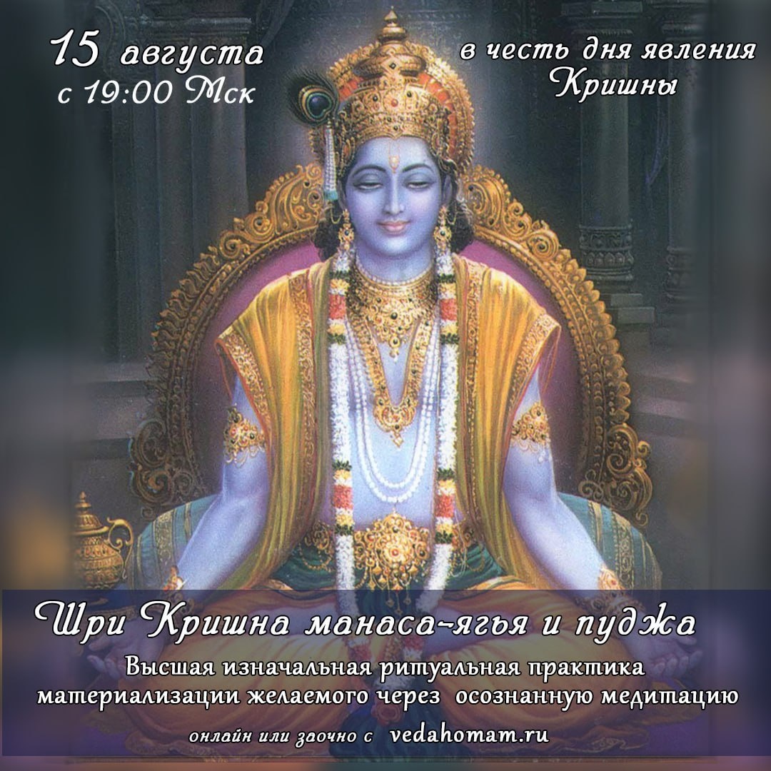 Для участия в Шри Кришна медитации манаса-ягье, пудже Шри Кришне, 15 августа, внесите пожертвование