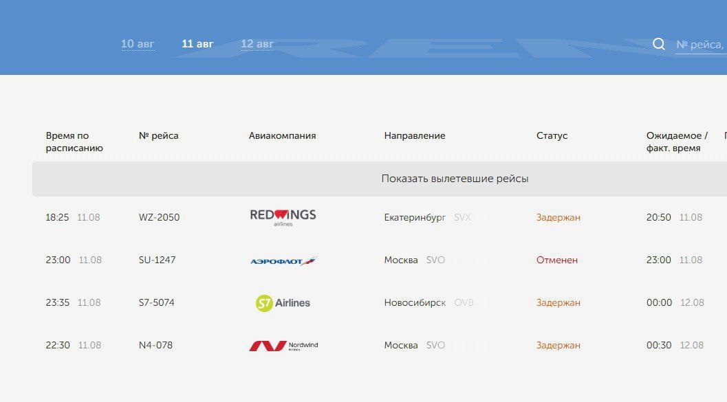 В ответ на пост ✈️ В аэропорту Оренбурга один рейс отменен и три задержаны В городе продолжает действовать план «Ковер», который запрещает отправлять или принимать самолеты. 🛬 Судя по онлайн-табло оренбургского аэропорта, самолет SU-1247 в Москву отменили. Покинуть наш город он должен был в 23:30 11 августа. 🛩 Еще три рейса задержали: 🔺 WZ-2050 в Екатеринбург - с 18:25 на 202:20 11 августа; 🔺 S7-5074 в Новосибирск - с 23:35 11 августа на 00:00 12 августа; 🔺 N4-078 в Москву - с 22:30 11 августа на 00:30 12 числа.