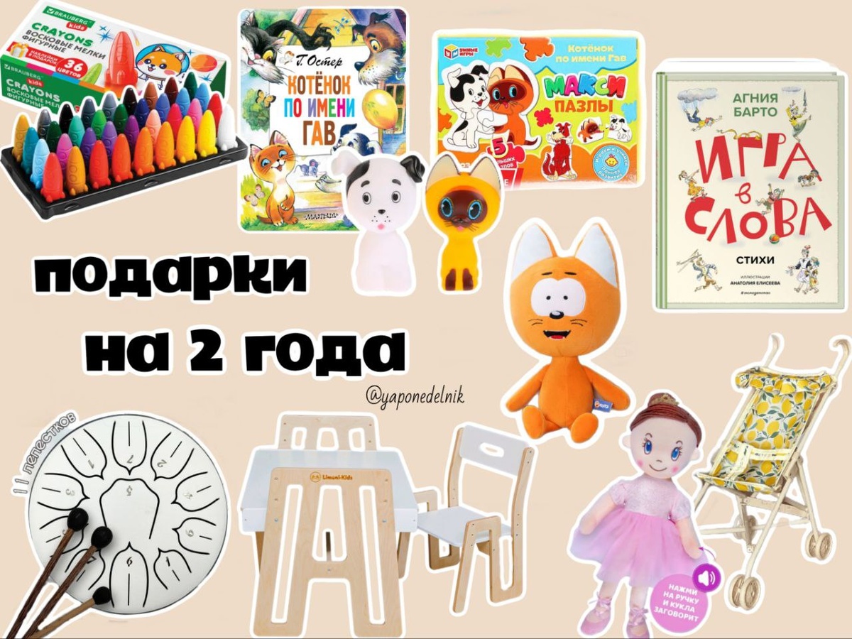 7 августа Есении исполнилось2️⃣года и я наконец собрала в единый список подарки, которые она получила 🔽 🔴растущие стол и стул 🔴глюкофон 🔴коляска и кукла 🔴мягкая игрушка Котэ 🔴сборник стихов Агнии Барто 🔴книга «Котенок по имени Гав» 🔴пазлы «Котенок по имени Гав» 🔴фигурки «Котенок Гав и Шарик» 🔴восковые мелки в форме ракет 🔴заколки Постепенно буду рассказывать про каждый подарок в отдельности и почему выбор пал именно на него. А тут можно посмотреть рецепт нашего простого тортика, который можно даже годовасу на ДР. 🐇 Коллеги по двухлетию! 🐥 Какие подарки стали хитом у ваших детей? Или что у вас в вишлисте? Делитесь списками, будет очень интересно почитать. 🎁 ☀️ Канал «Мам, смотри!»