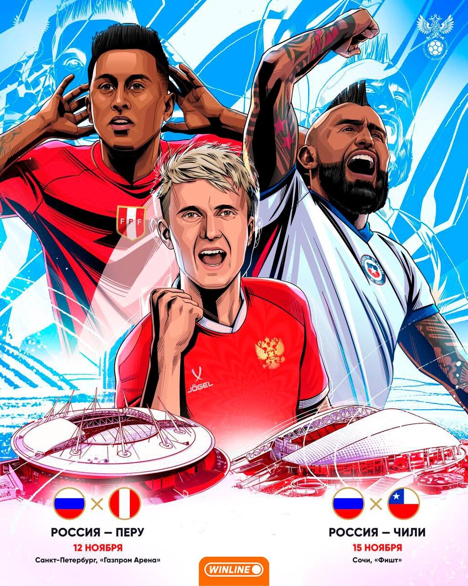 ⚡️🇷🇺 Сборная России сыграет с Перу и Чили 🇷🇺🇵🇪 Игра с Перу состоится 12 ноября в Санкт-Петербурге. 🇷🇺🇨🇱 Матч с Чили пройдёт 15 ноября в Сочи. 🇷🇺🇨🇱 А 18 ноября в Сочи Чили и Перу сыграют между собой