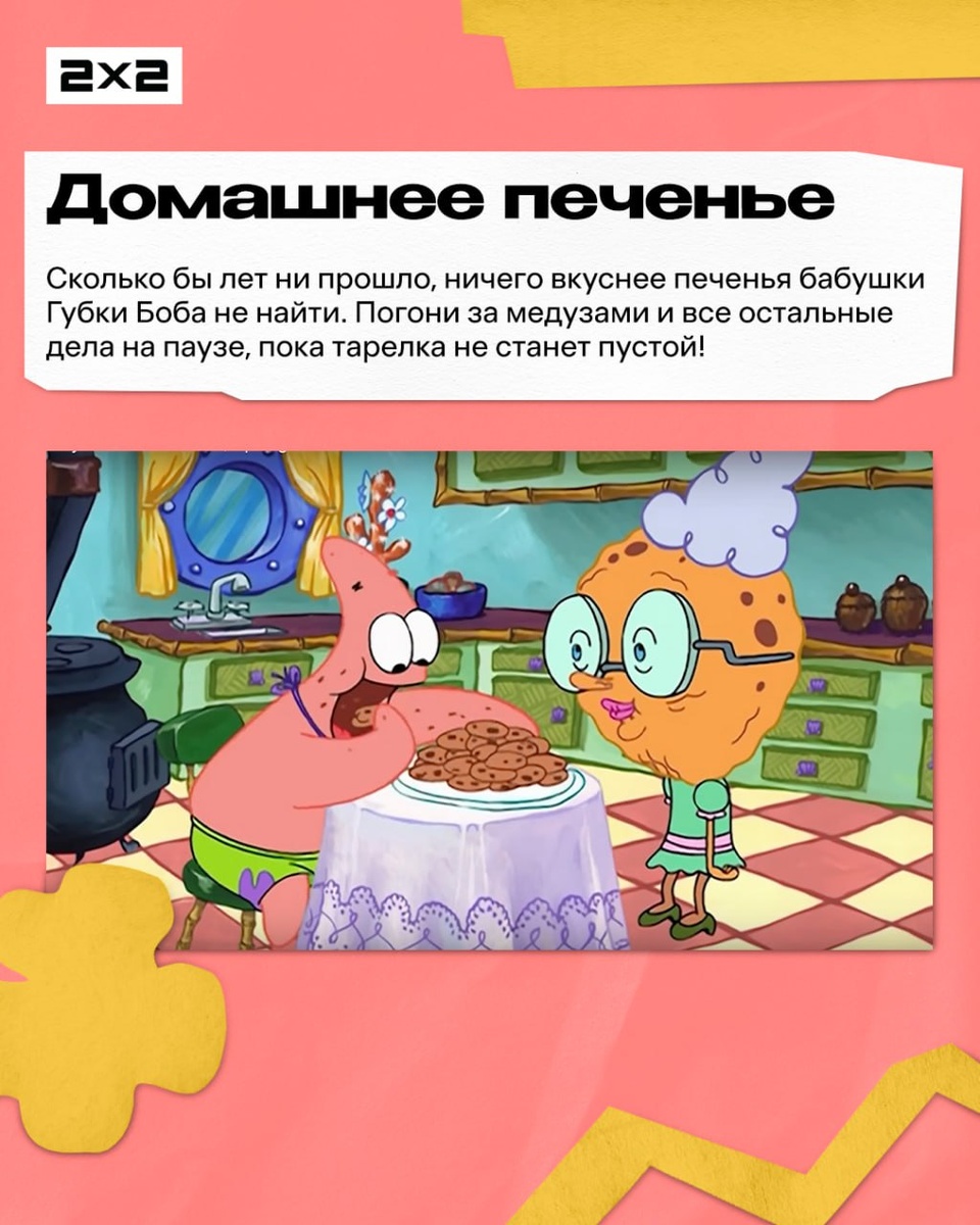 Все знают особую любовь Патрика к еде. Собрали любимые снеки персонажа в карточках. Ну разве можно назвать такие привычки вредными?