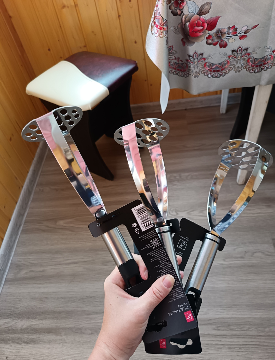 С утра поехали на дачу. Машину набили вещами "под пресс", издалека можно было принять нас за цыганский табор. Хотелось привезти за раз, как можно больше, удивительно, что влезло всё, кроме одной подушки. Ну ладно в следующий раз. Муж рулил, Костя (сын 2г. 8мес.) сидел в своём кресле, а ноги были чуть не выше головы, место же в машине не должно пропадать. Мама ехала на переднем сиденье, у неё и под ногами и на коленях сумки. Я сзади то же окруженная пакетами, вёдрами и т. д. Отъехали от дома и вспомнили про шашлыки, поехали в гипермаркет. Купили шашлык, овощи, лаваш, а так же уголь и решётку. А ещё насмотрели, толкушки для картошки. Литые, качественные!!! Но оказалось дорогие или за фишки магазина, которые надо собирать. А у нас нет, ну ладно... когда пришли на кассу выяснилось, фишки у нас оказывается есть, они виртуальные и копятся на карте. Мы редко бываем в этом гипермаркете поэтому и не знали, как они копятся. Вернулись за толкушками...мне, маме и на дачу... Утромбовались в маш