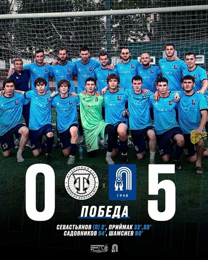 Встреча команд «Девон-СШ4» и «Торпедо» завершилась со счётом 5 : 0 в пользу октябрьцев. Первый гол на второй минуте в пенальти забил Илья Севастьянов, последующие реализовали Евгений Приймак (два гола), Алексей Садовников и Руслан Шамсиев. Встреча двух футбольных дружин прошла в Уфе. Это была очередная игра чемпионата Башкирии по футболу среди мужских команд. По итогам 12-го тура «Девон-СШ4» на пятой строчке турнирной таблицы чемпионата. Следующая игра октябрьцев состоится дома: 17 августа на стадионе «Нефтяник» они встретятся с «Содовиком» из Стерлитамака. Начало — в 17.00. 12 + Фото: СШ № 4