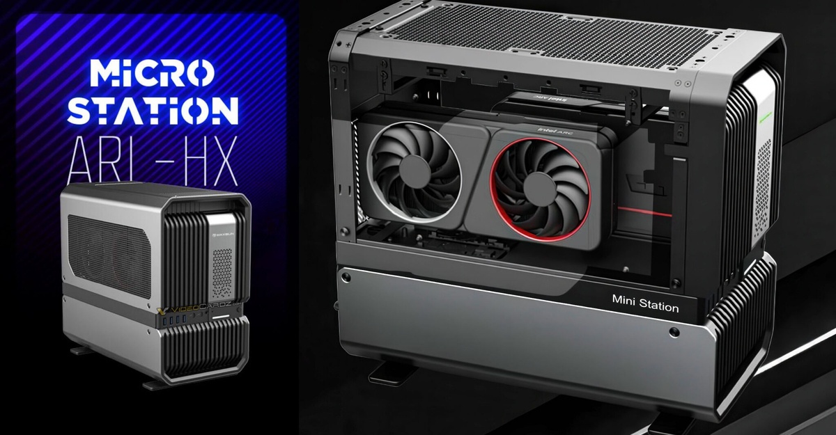 MaxSun готовит к выпуску MicroStation — компактную рабочую станцию объёмом всего 20 литров, но с производительностью, которой хватит для тяжёлых вычислений. Источник изображения: videocardz.com В основе — мобильный процессор Intel Core Ultra 9 275HX (8 производительных и 16 энергоэффективных ядер, до 5,4 ГГц, TDP до 160 Вт), распаянный на плате формата MoDT. Оперативной памяти можно поставить до 256 ГБ DDR5-7200 (4 слота SO-DIMM по 64 ГБ), чего хватит для работы с большими массивами данных. По умолчанию MicroStation идёт с двумя видеокартами Intel Arc Pro B60 Milestone по 24 ГБ каждая (всего 48 ГБ видеопамяти). Вместо них можно установить одну топовую карту. Охлаждение видеокарт сделано по схеме reverse-flow с композитными теплотрубками и металлическими панелями. Источник изображения: MaxSun Из интерфейсов тут четыре Thunderbolt (два TB5 и два TB4), два DisplayPort-In, гигабитный и 10-гигабитный LAN, Wi-Fi 7. Для накопителей — три слота M.2 (PCIe 5.0 и 4.0) и два SlimSAS, к которым мож