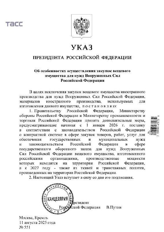 Ранее мы с «Два майора» и коллегами в Госдуме уже поднимали тему недопустимости закупок военной формы за рубежом ⤴️ https://t.me/dva_majors/76009 . ❗️Теперь эта позиция закреплена в указе Президента с чёткими сроками и требованиями: с 2026 года военная форма для ВС РФ будет полностью российского производства, а с 2027-го - только из отечественных тканей. Отмечу, что отсутствие собственной сырьевой базы является значительным препятствием для развития российской текстильной промышленности ➡️до 95% сырья закупается за рубежом, что делает производство зависимым от внешних поставок. 📌 Переход к импортозамещению потребует обновления производств, расширения мощностей и внедрения новых технологий. Наш Комитет ГД по промышленности и торговле совместно с Минобороны, Минпромторгом и отраслевыми экспертами начал подготовку дорожной карты поэтапного перехода ➡️от квот на импорт до технического переоснащения, чтобы армия получала форму российского производства в полном объёме и в срок. 📱 ГУТЕ