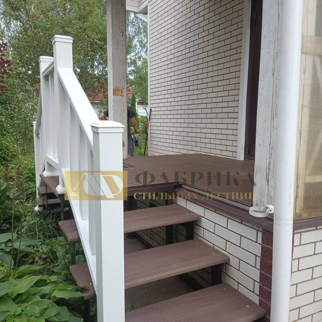 🏡 Уличная лестница на два пролёта: металл, белые балясины и ДПК «вельвет» Двухмаршевая уличная лестница с площадкой — это не только удобный вход в дом, но и эффектная архитектурная деталь, которая задаёт тон всему фасаду. Сегодня расскажем о конструкции открытого типа на металлическом каркасе, с белыми балясинами и обшивкой из ДПК тёмно-коричневого цвета с текстурой «вельвет». 🏗 Прочная основа — металлический каркас Каркас сварен из прочного стального профиля, выдерживает нагрузку до 500 кг на ступень. Для защиты от коррозии металл проходит двойную обработку: грунтование и порошковое окрашивание. 📍 Преимущества: 🔗 Подробнее о каркасах: fabrika-lestnicy.ru 🪜 Открытый тип с площадкой Открытые ступени визуально «облегчают» конструкцию, а площадка в середине создаёт удобный переход между маршами. Это особенно полезно: ⚪ Белые балясины — акцент и классика Ограждения из балясин в белом цвете смотрятся свежо и элегантно. Они гармонируют с любым фасадом — от классического до скандинав