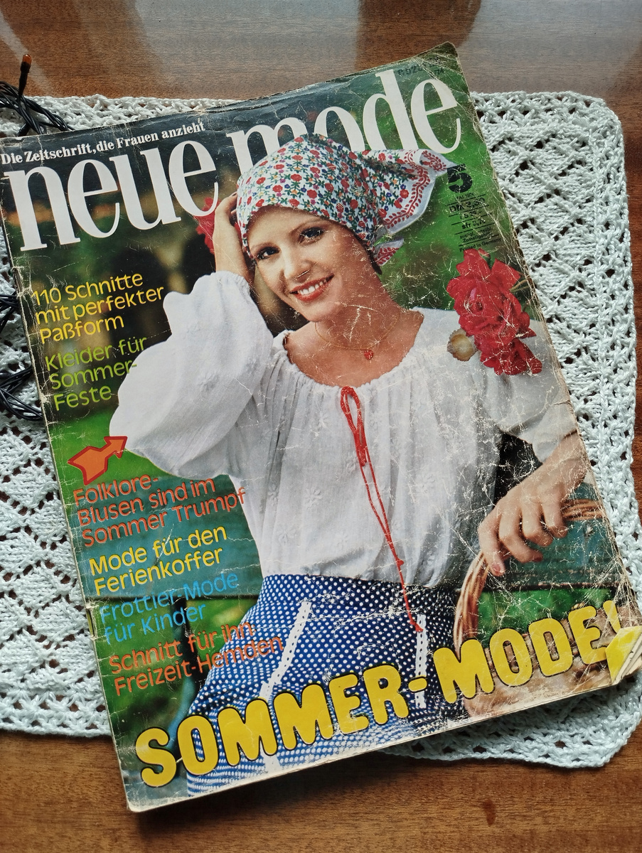 У меня есть разряд портнихи легкого женского платья. Не скажу, что он построил мою жизнь, но вклад внес. Когда надо сшить костюм на выступление, концерт, соревнования или ролевую игру - умение шить очень пригождается. Любовь к шитью у меня с детства, я ваяла куклам наряды очень активно. И более всего возбуждали творческую жилку иностранные журналы мод. У нас они были и очень интересные. Например Neue Mode с французскими вкладышами, привезенные тёткой из Алжира. Поначалу, когда я была маленькой, это было скорее окно в неизведанный мир, чем инструмент для творчества. Так классно было усевшись под торшером в кресле листать эти журналы и смотреть на элегантных женщин, необычные вещи и детей, так не похожих на меня и моих ровесников. Таких детей я только в фильмах братских социалистических стран видывала. Не говоря уж о прикидах. Из чего вообще такое шить? Позже я оценила, какие там классные выкройки. Видимо, поэтому эти журналы у меня в ужасном состоянии). Очень тонкая бумага местами и