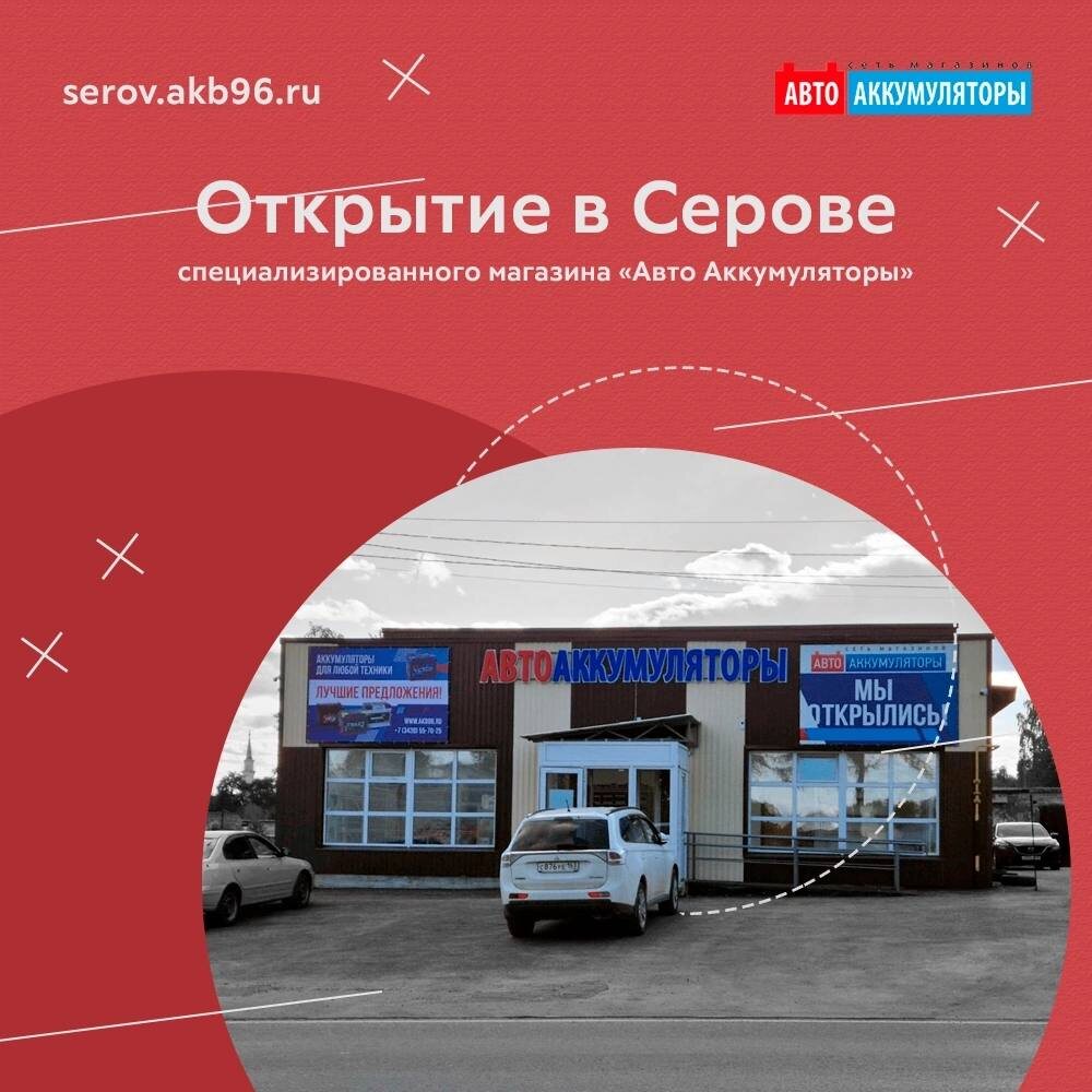 В честь открытия магазина мы даем скидку в 15% на аккумуляторы до 31.08.25. Наш адрес: Серов, ул. Братская, 35. Телефон: +7 (3438) 55-70-25 Сайт: serov.akb96.ru/stores/ В нашем магазине представлен широчайший ассортимент аккумуляторных батарей на любой автомобиль. Огромный опыт работы с 1996 года позволяет подобрать идеальную батарею конкретно под ваш запрос. Также мы предоставляем бесплатные услуги: 1) Диагностика вашего аккумулятора. Наш специалист проверить текущее состояние батареи, определить напряжение под нагрузкой и без нагрузки, внутреннее сопротивление и пусковые характеристики. По итогу - вы получите полезную информацию и мнение специалиста. 2) Установка при покупке у нас. Наш специалист установит аккумуляторную батарею на ваш автомобиль, если установка является простой, а батарея имеет емкость до 79 Ач. Разбор дополнительных элементов (блоков предохранителей, кожухов, воздуховодов) считается частью сложной установки, которая является платной. Но на большинстве автомобилей а
